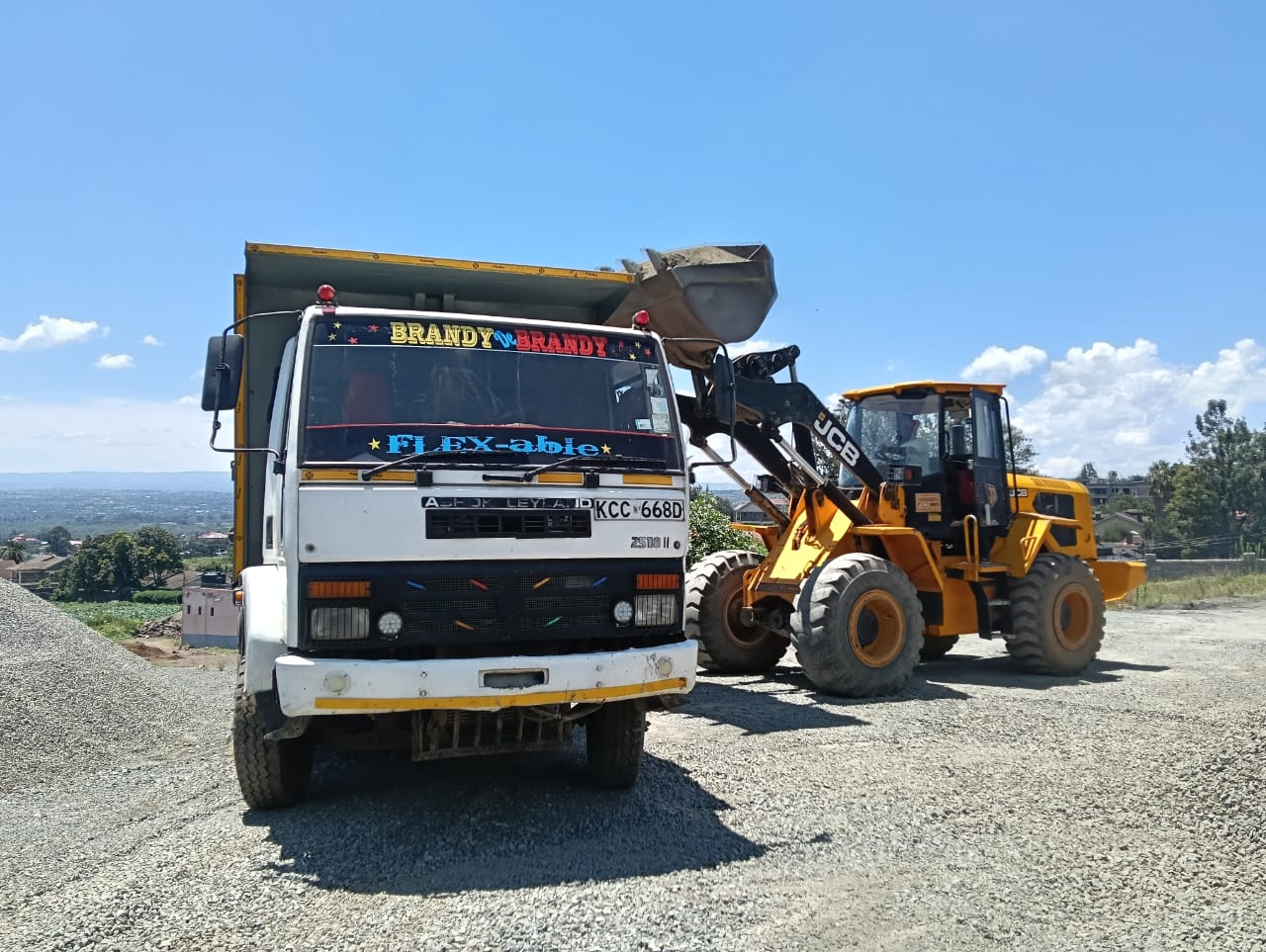 Our Fleet: Well-maintained trucks and vehicles used to transport sand, ballast, murram, machine-cut stones, and red soil across Kenya.